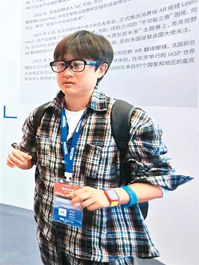 在亮亮视野展区,记者沉浸式体验了企业最新推出的第二代AR翻译眼镜——Leion Hey2。佩戴这款眼镜后,只需自然目视前方,视线约2至3米处便会浮现清晰悬浮字幕,无需低头查看其他设备,就能实现“抬头交流、沉浸沟通”的无打断跨语言交流体验。