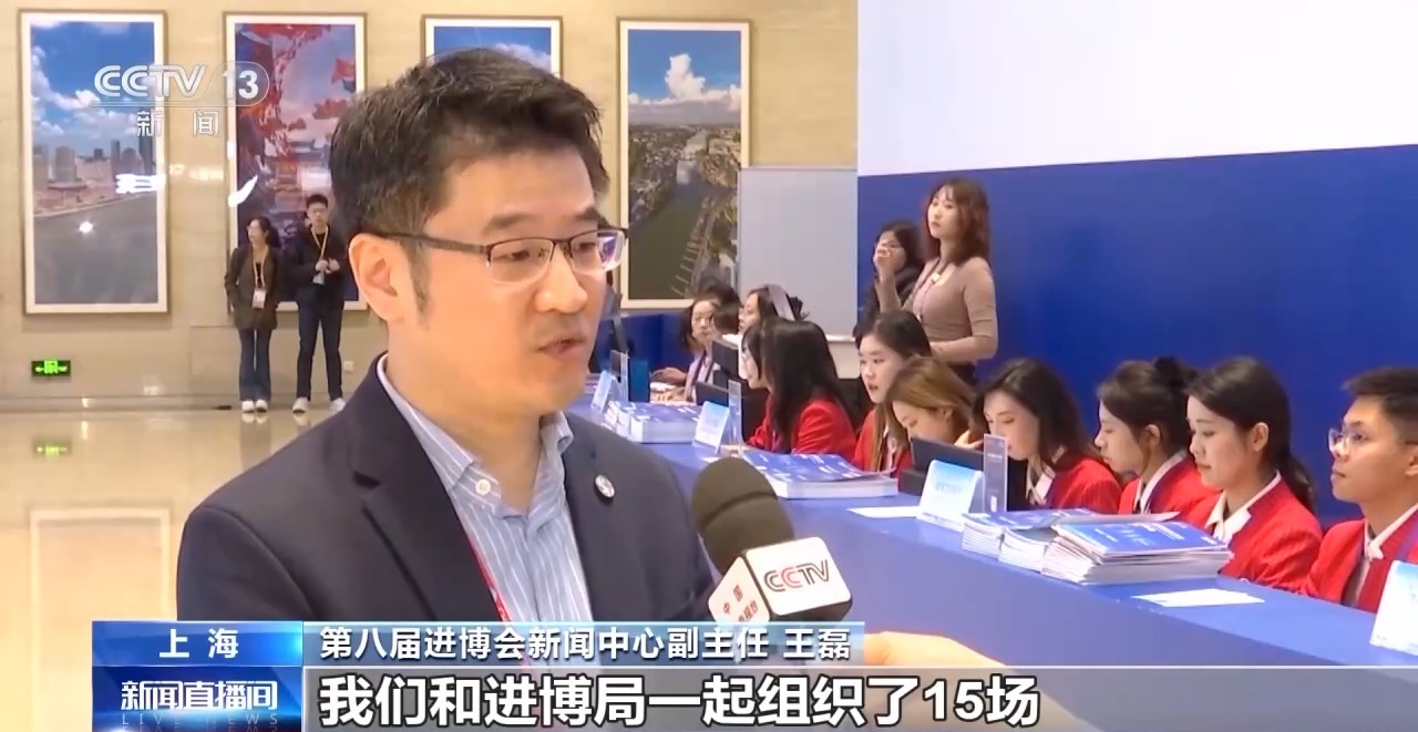 第八届进博会新闻中心副主任 王磊:我们和进博局一起组织了15场会内的新闻发布会和相关的新闻发布活动,组织了16条会内采访线路和6条会外采访线路,既面上介绍整个进博会的相关情况,也分领域分国别介绍进博会的亮点和看点。同时我们也邀请了相关领域的海外企业掌门人走进进博会的新闻中心,推出了18场与总裁面对面的集中采访,请海外的企业掌门人讲述他们的进博故事。