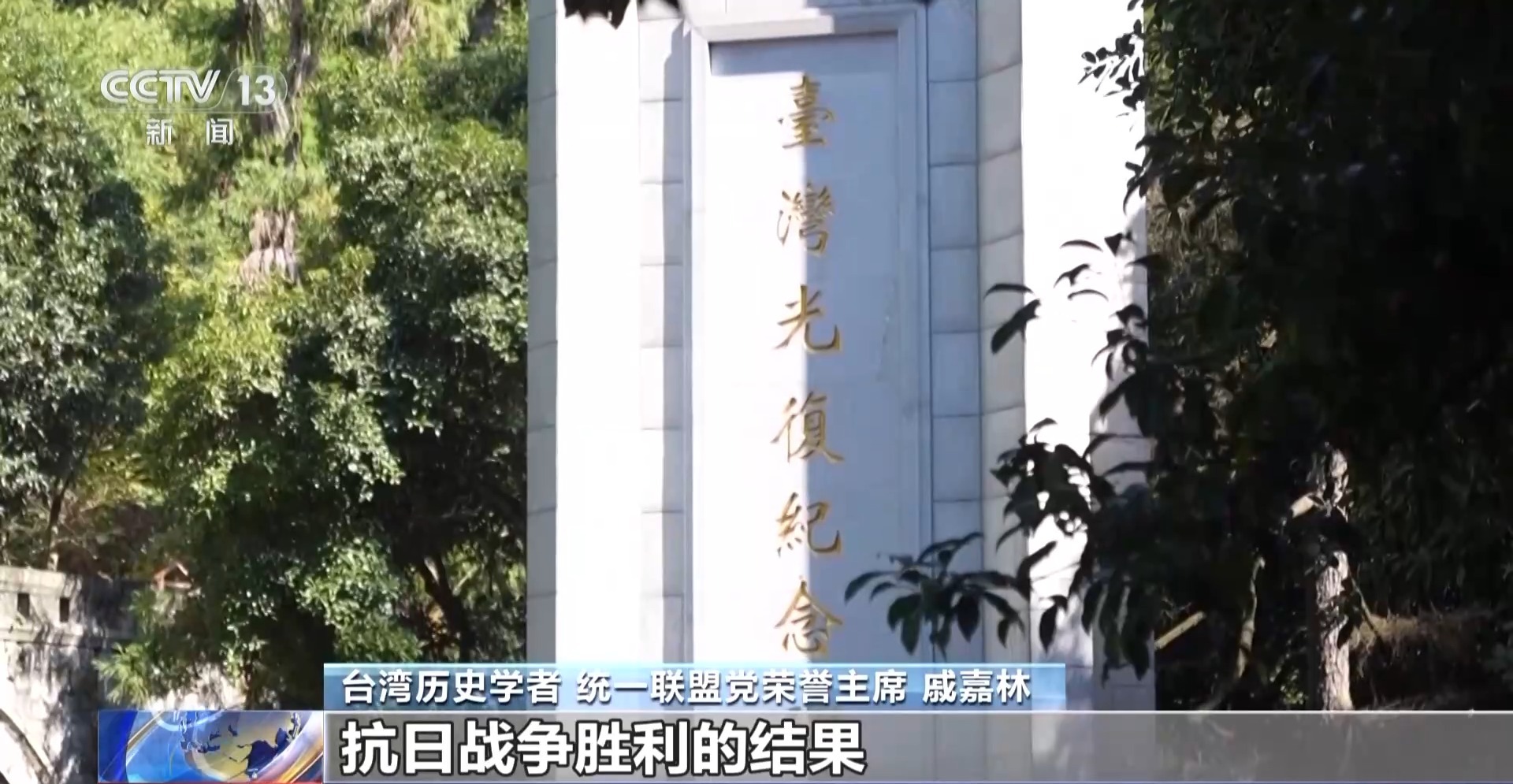 台湾历史学者 统一联盟党荣誉主席 戚嘉林:事实上,130年前是日本人侵占、侵略,占据了台湾。80年前我们收复了台湾。台湾是属于中国的一部分,这是一个历史的事实。收复台湾是我们全体中国人民抗日战争胜利的结果。没有抗日战争胜利,就没有台湾光复。我们透过这样的历史回归真相,让台湾、让全世界了解中国是如何在抗日战争胜利以后对台湾恢复行使主权。