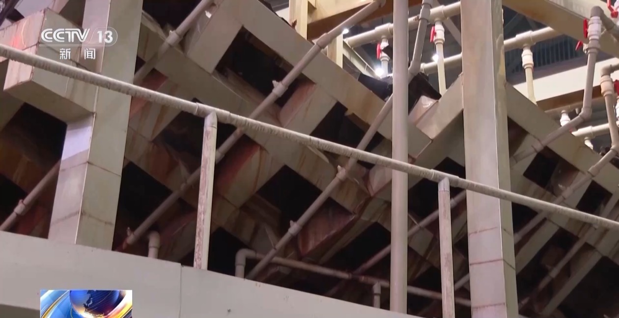 古船由大型的钢架作基本支撑,外部被支架式的喷淋系统包裹。船体的脱盐、脱锈以及船体填充加固及脱水定型等修复保护措施,仍在持续展开。
