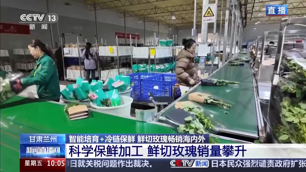 目前,这座基地已实现全天候生产38种鲜切玫瑰,通过“线上+线下”的销售模式,不仅畅销国内70多个城市,还远销东亚、东南亚以及中亚市场。2025年,这座基地出口海外的鲜花数量可以达到560多万枝。