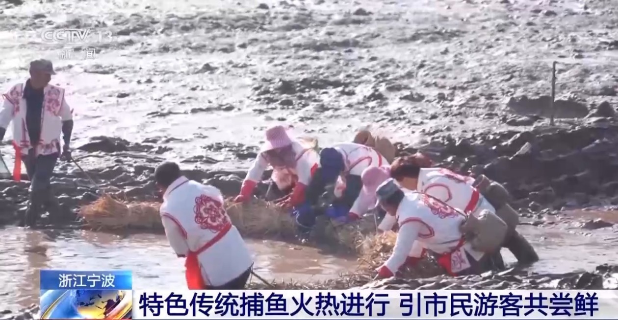 1月10日,在浙江宁波,人们用当地特色的“抲冬塘”捕鱼法作业,还请大厨当场烹饪冬季的第一网渔获,供市民游客品尝,在丰收的喜悦中寄托“年年有余”的美好期许。