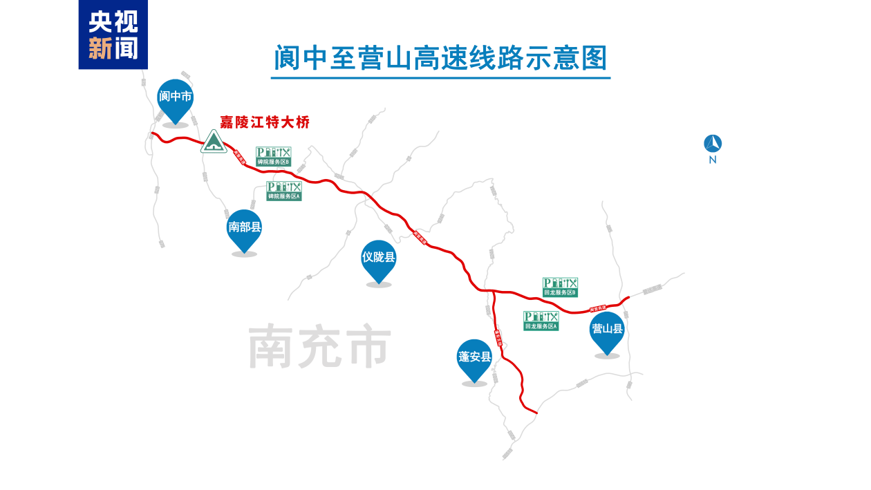 阆营高速全长103公里,是四川省高速公路网重要组成部分,预计今年年底建成通车。建成后,线路将串联起阆中市、南部县、仪陇县、蓬安县和营山县,实现南充市“县县通高速”。届时,从阆中至营山的通勤时间将由原来的2.5小时缩短至40分钟,进一步串联起川东北区域路网,促进沿线城镇的联通与产业协同发展,推动成渝地区双城经济圈建设。