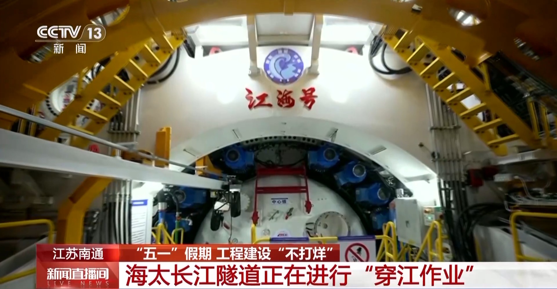 总台记者 唐高林:江苏南通海门区境内,靠近长江的地下深处,距离地面有30多米。“五一”假期,这里有三百多名工人持续奋战在隧道施工一线。