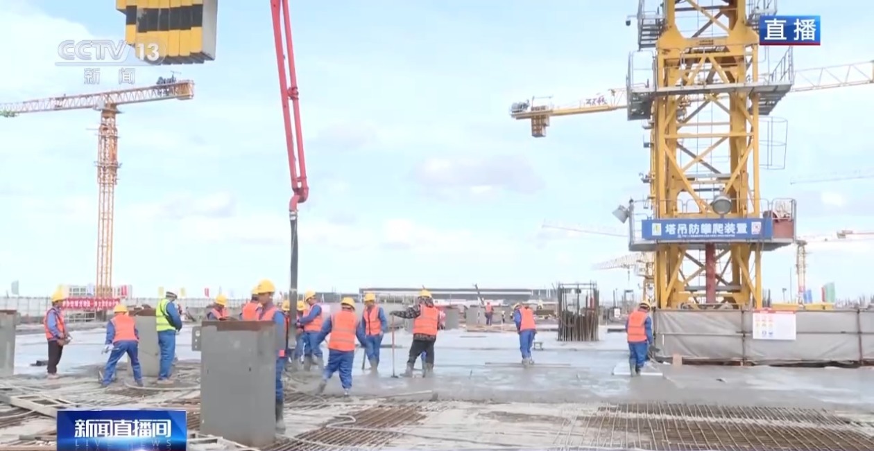 上海东站距离上海浦东机场5公里,将建成集合航空运输、铁路交通、城市轨道交通等于一体的大型交通综合体。上海东站从今年的3月18日进入地上主体结构施工。今天,主站房混凝土主体工程结构封顶在即。