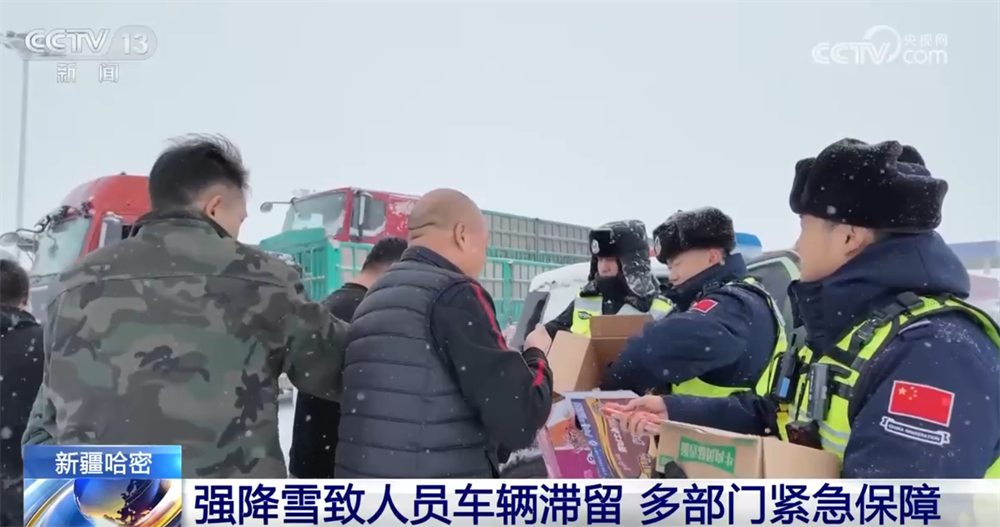 11日中午开始,新疆哈密市的降雪持续增强。在G7京新高速白山泉边境检查站,930多辆车、1800多人滞留。当地迅速启动应急预案,为滞留人员发放应急物资,处理积雪,引导车辆有序停放,并协助司机购买、添加柴暖油。12日,当地将视天气情况,陆续放行滞留车辆。