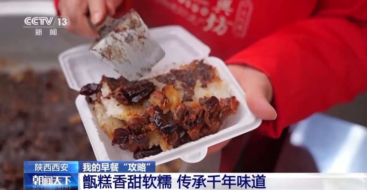 西安市非物质文化遗产保护中心副主任 王智:溯源的话,至少可以溯源到唐代著名的宫廷食品,烧尾宴食单上的水晶龙凤糕。后面到民间,用大甑锅蒸,形成陕西著名的早点。