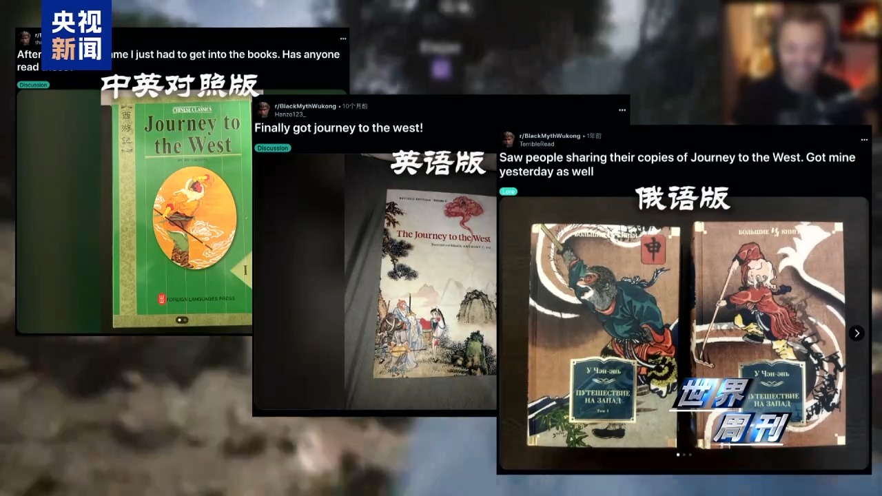 在红迪网《黑神话:悟空》 社区,来自世界各地的玩家纷纷晒出不同语言版本的《西游记》,有中英对照版、英语版、俄语版,译本种类丰富;还有玩家在视频平台找到了86版《西游记》电视剧,专门在游戏前给自己来了场“文化速成”,只为读懂游戏里的每一处细节。