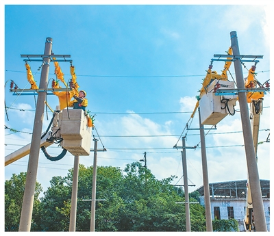 近日,国家电网安徽省芜湖市供电公司、芜湖市繁昌区总工会举办繁昌区2025年电力应急保障供用电服务技能竞赛,助力地方技能人才队伍建设和电力应急保障发展。图为参赛选手在参加配网不停电作业比赛。鲁君元摄(人民视觉)