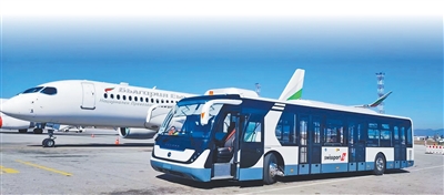 中国宇通电动客车作为摆渡车在索非亚机场运行。