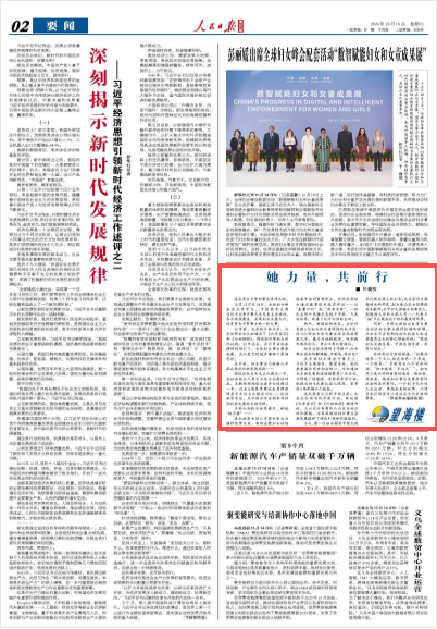 这是堂堂正正的中国主张,也是扎扎实实的中国行动。既延续《北京宣言》和《行动纲领》精神内核,又以东方智慧和人文关怀回应时代课题,为各国推动妇女事业全面发展提供了理念引领和实践路径。