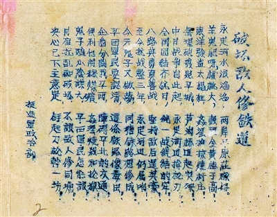 《破坏敌人修铁道》传单。北京市档案馆藏