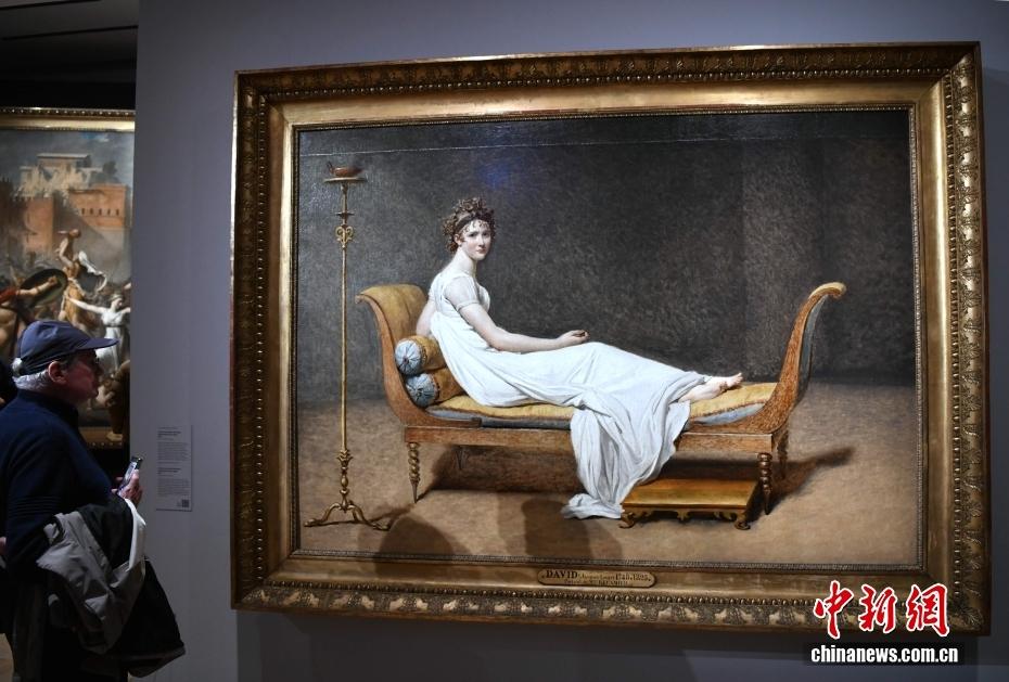 图为观众在欣赏他创作的名画《雷卡米埃夫人像》。中新社记者 李洋 摄