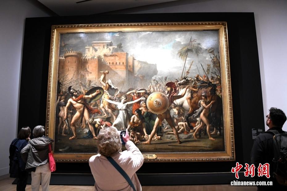 图为观众在欣赏他创作的名画《萨宾妇女》。中新社记者 李洋 摄