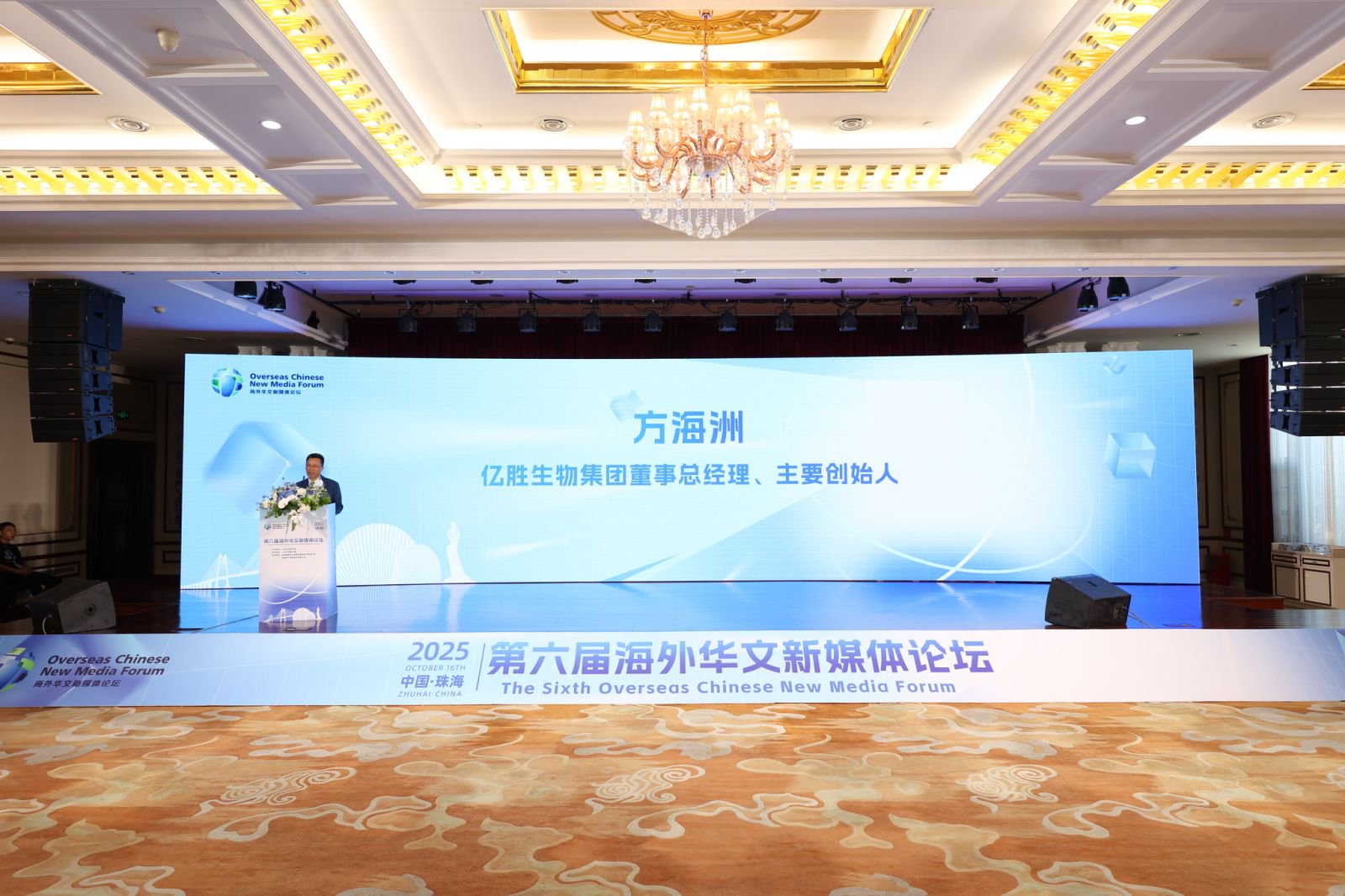 亿胜生物集团董事总经理、主要创始人方海洲以集团从珠海本土企业到在香港上市为例,表示自己同企业经历了中国生物医药产业实现从“跟跑”到“并跑”,再到部分领域“领跑”的历史性跨越。他认为,“医药出海不仅是产品的输出,更是医疗技术、创新理念和文化价值的深度融合”,在这个过程中海外华文媒体发挥着不提替代的作用,它们既是文化传播使者,也是价值共鸣放大器。亿胜愿与海外华文媒体共同书写珠海企业、中国生物医药出海新篇章。