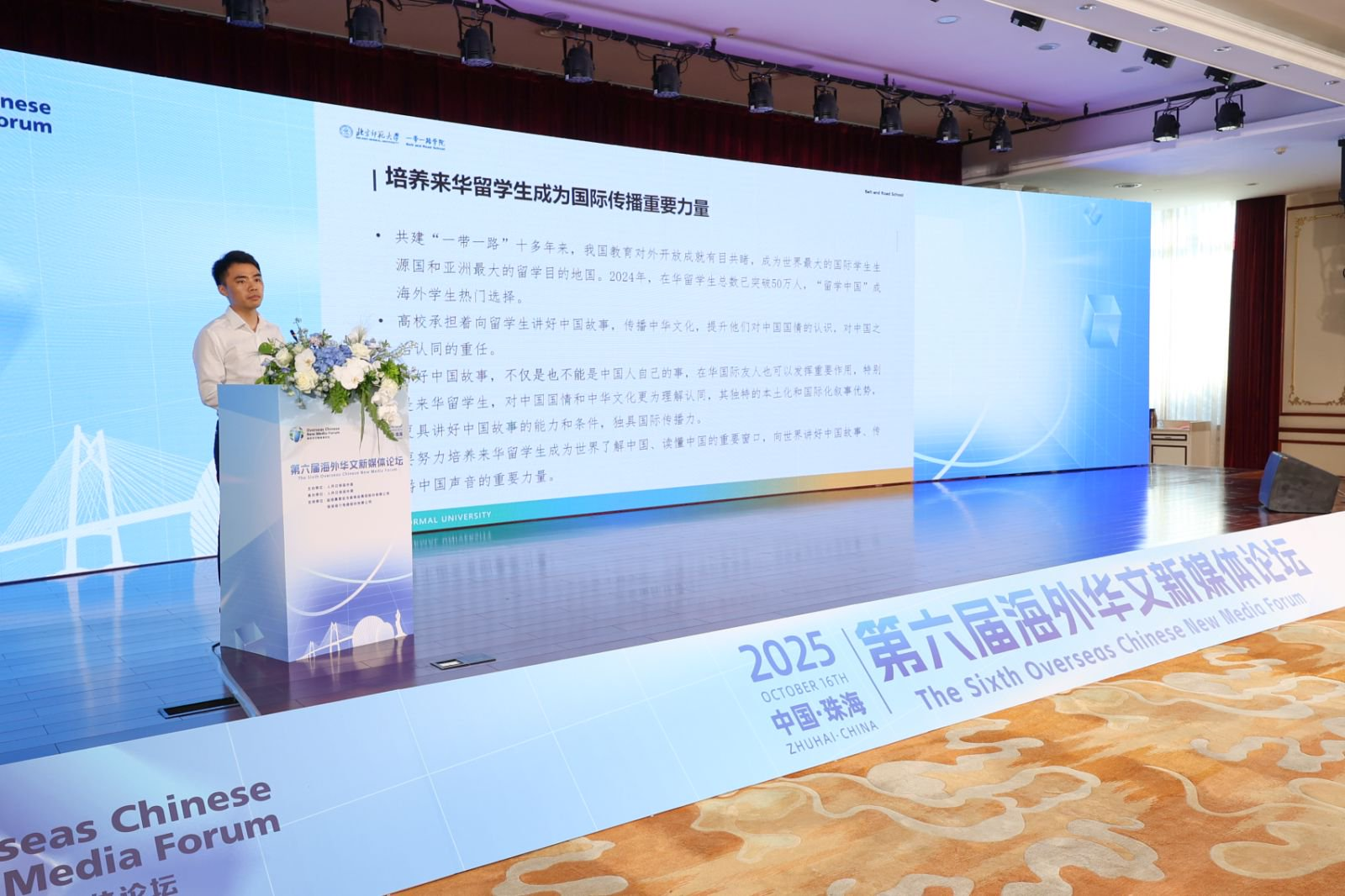 “作为我国对外开放的前沿阵地,教育对外开放也是提升大湾区、珠海国际传播力的重要抓手。”北京师范大学一带一路学院直属党支部书记张坤领认为,在讲好中国故事、讲好大湾区故事方面,在华国际友人,特别是来华留学生可以发挥重要作用。应加强国际交流合作,为国际传播搭建平台。