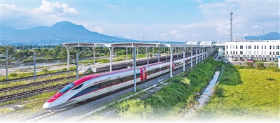 5月20日,在印度尼西亚万隆德卡鲁尔站,一列雅万高铁高速动车组列车驶出站台。