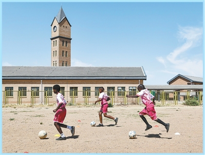 在中国援建的博茨瓦纳莫帕尼小学,学生们进行体育锻炼。