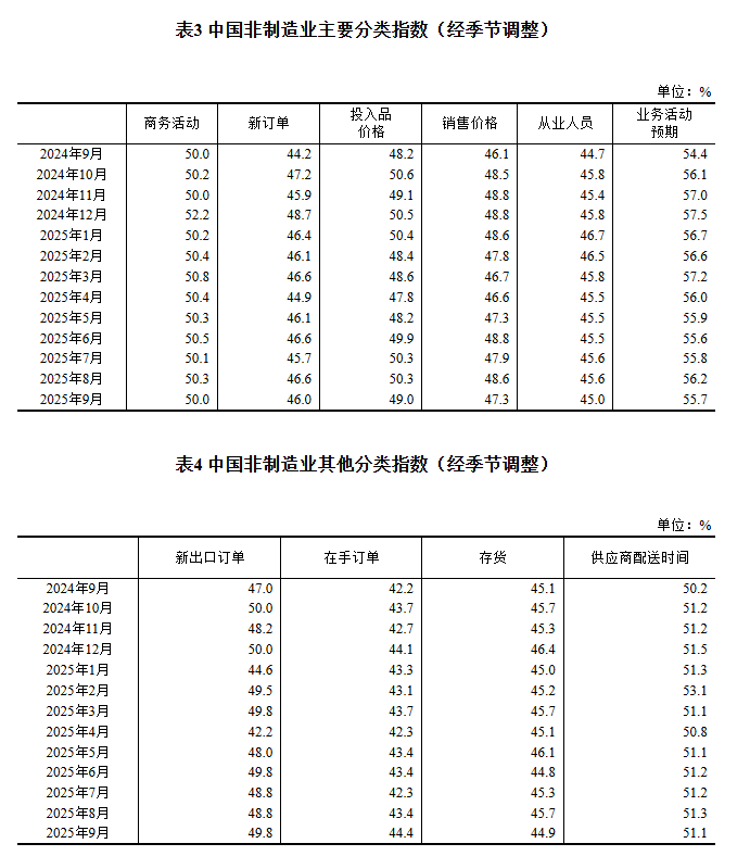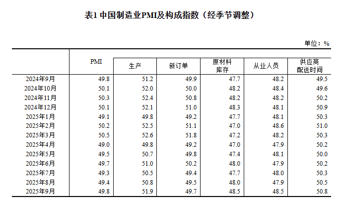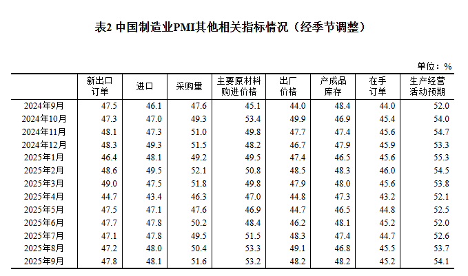 2025年9月中国采购经理指数运行情况
