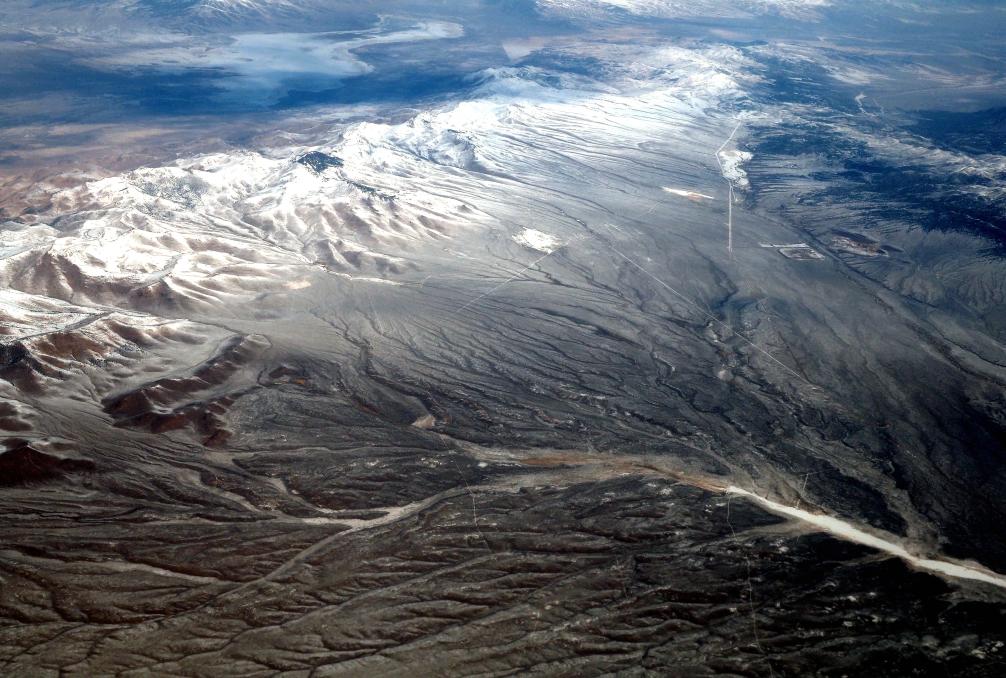 这是2020年1月18日在美国阿拉斯加航空1022航班上拍摄的被白雪覆盖的山地。新华社记者吴晓凌摄